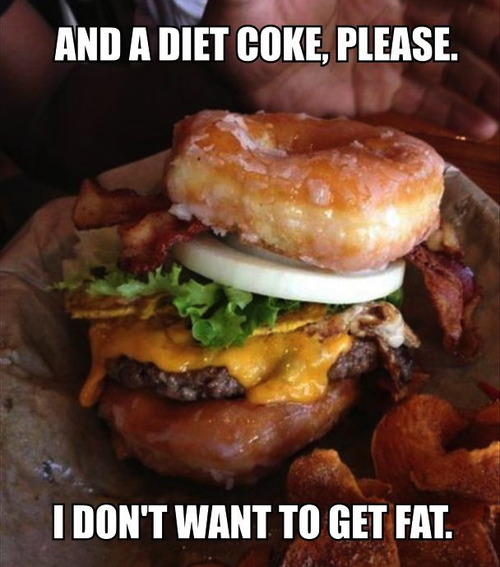 What looks like a huge cheeseburger topped with bacon sandwiched between two Krispy Kreme doughnuts is apparently food to help you not get fat.