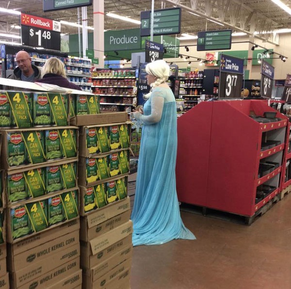 Ok I guess the cast of the movie got out of their animation and magically appeared as real shoppers at Walmart. She needs to go home and watch the movie and stop living a lie.