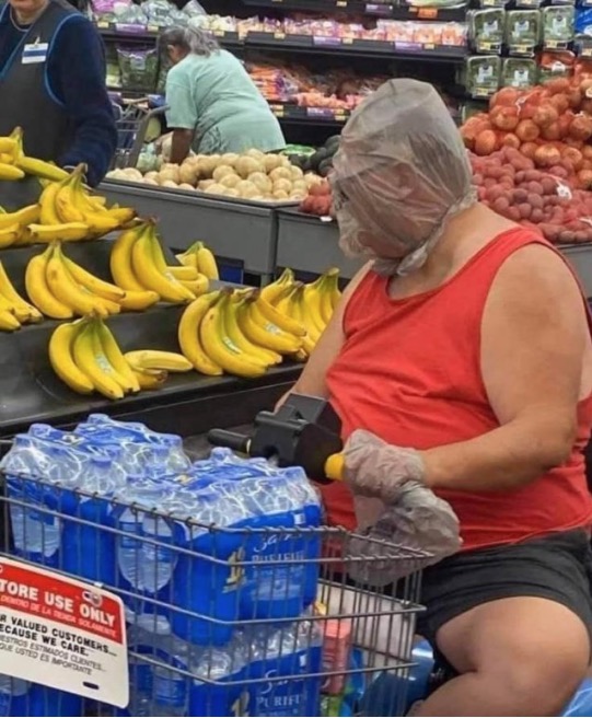 If you have a plastic bag at Walmart just wrap it around your head and you won't need a mask. Be sure to poke a hole in it.