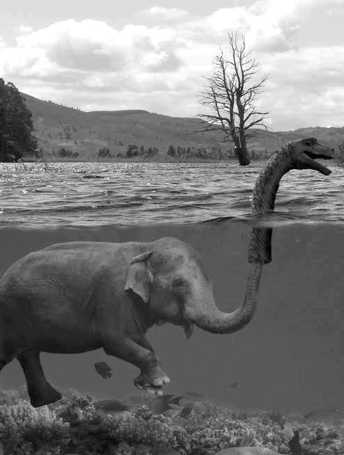 Here are some prove that dinosaurs do still exist in Africa. This dinosaur lives with elephants and he loves water.