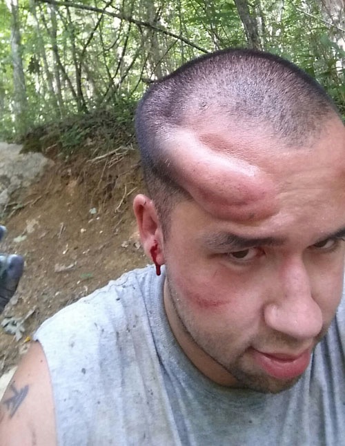Ouch. Is all I have to say. Did somebody hit this guy with a baseball bat? It looks like he grew another head on top of his head. Holy crow.
