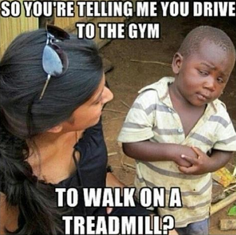 So you're telling me you drive to the gum to walk on a treadmill???