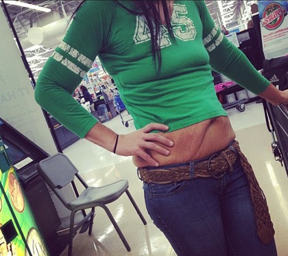 Do You Even Lift Bro? Droopy Abs in a Belly Shirt - Walmart Fashion Fail