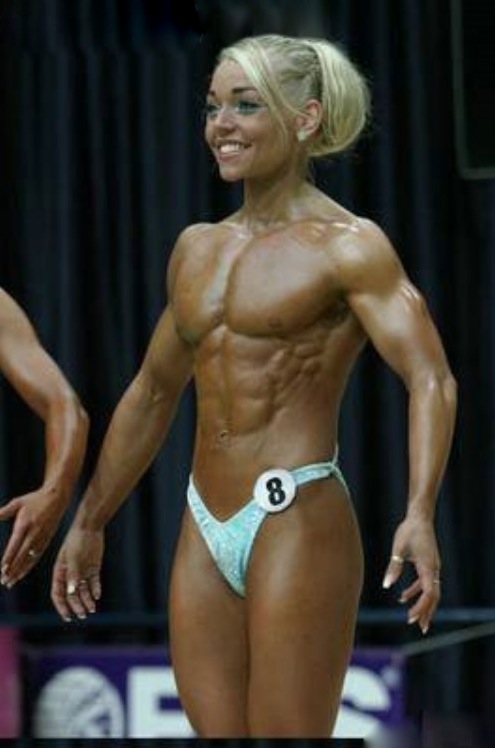 I think this woman bodybuilding thing is getting out of hand. This woman has taken way too many man drugs or something because her chest looks like mine. Well, better than mine.