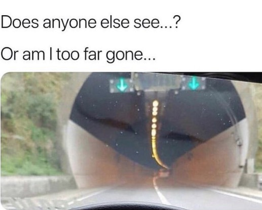 Does anyone else see or am I too far gone? I think I've been driving too long.