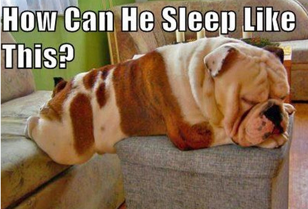 How can this dog sleep like that,? but i bet hes way too comfortable to even think about waking up.