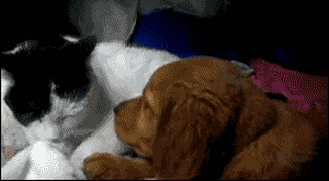 Watch these two adorable pets groom each other. The cat loves the dog and the dog loves the cat. Now it's time to give each other a bath. So precious!