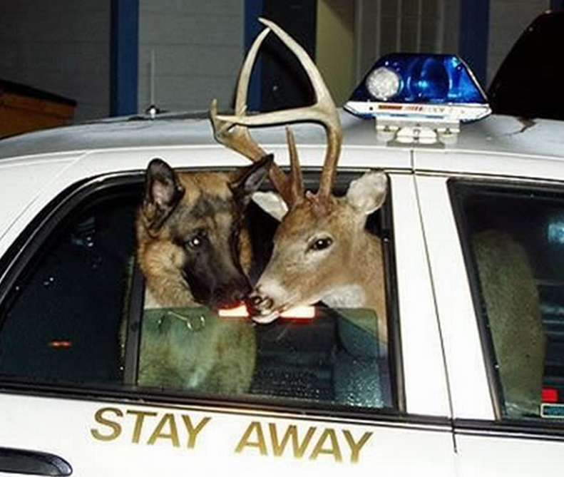 Dog> I Sniff Drugs DEER> I Eat Weed