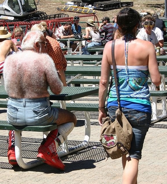 This guy has the hairiest white back you will ever see. It looks like an albino monkey or a furry white animal.