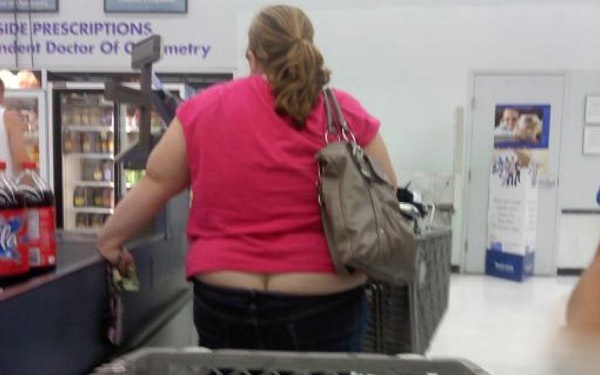 This is what happens to people who do crack. You don't want this to happen to you. Should she either try a belt or maybe some sweatpants with a really strong pull tie.