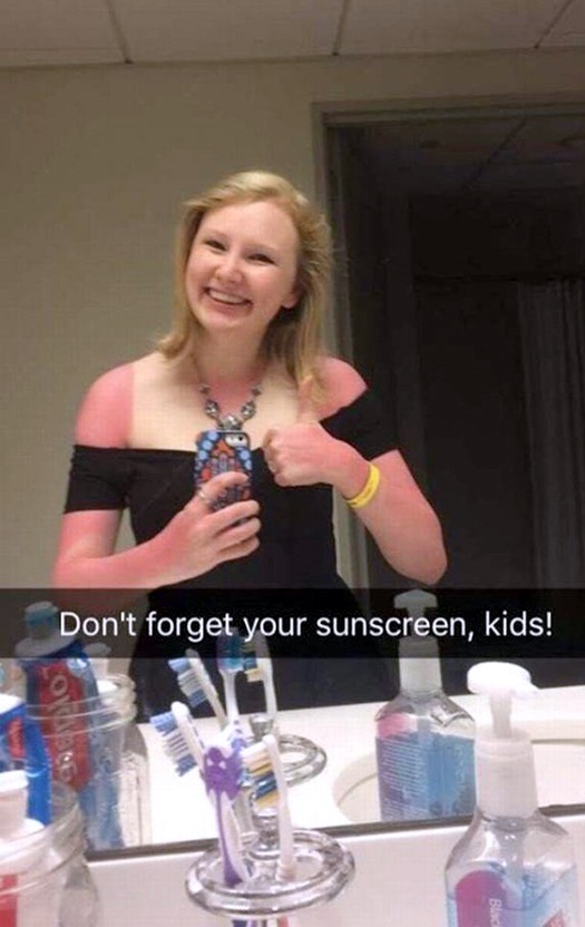 Looks like not only did she forget the sunscreen but she has third degree burns over half of her body. Time to get out the aloe vera.