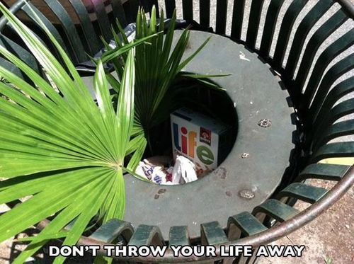 It's very important to never throw your life away. Unless it's just the cereal box, then just throw it away.
