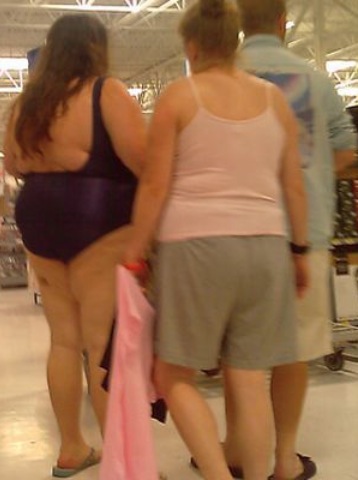 I guess at Walmart you can not only try bathing suits on but you can also walk around the store in them? Hopefully this girl doesn't turn around because I won't be able to unsee it.