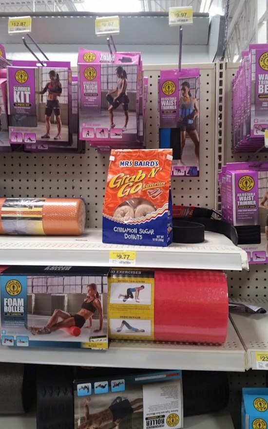 Donuts and Exercise Equipment at Walmart. Tempting! Workout or Eat?