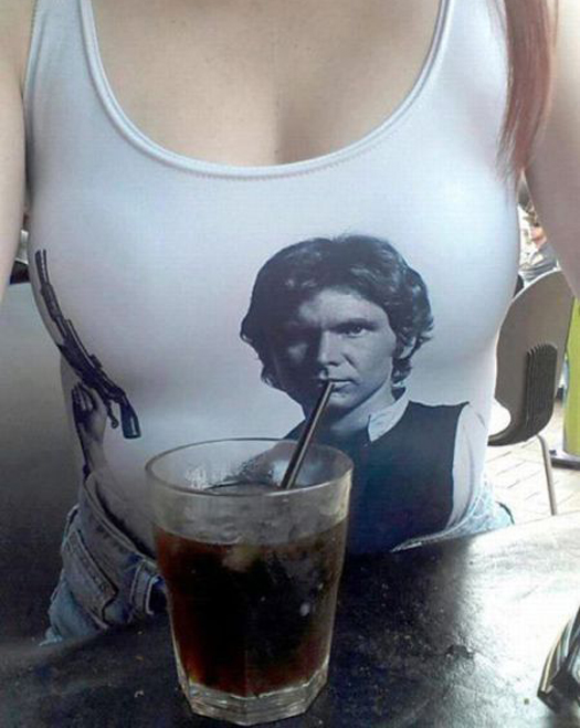 Well this girl certainly knows how to be creative. That, or she's a diehard Star Wars fan and she's afraid that Hans Solo dear is getting pretty thirsty stuck to melons like those.