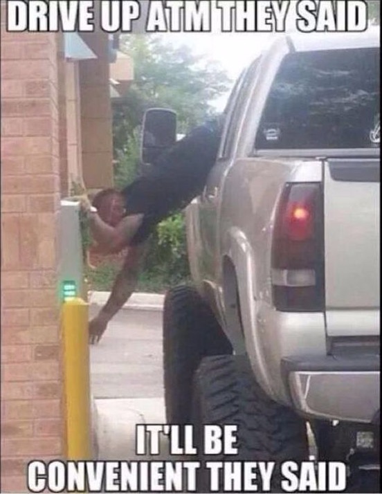 Drive up ATM they said. It'll be convenient they said. I just need to hang down.