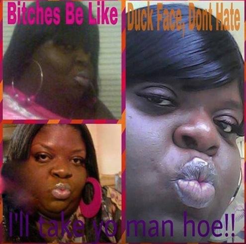 Bitches be like duck face don't hate. I'll take yo man hoe! I'm hatin as much as you can be hated yo and I'm gonna steal yo man...