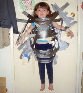 This little girl looks quite happy with her predicament. She's been duct taped to the door and is dangling suspended by that super strong tape. What fun!