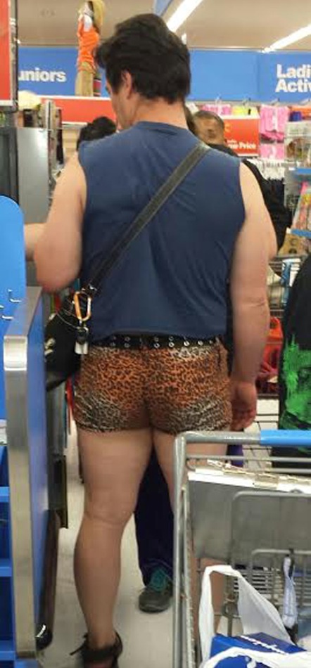 This guy is really on the cutting edge of fashion fail. He's got all the right components for an epic fail too. I think I'm using the next checkout aisle.
