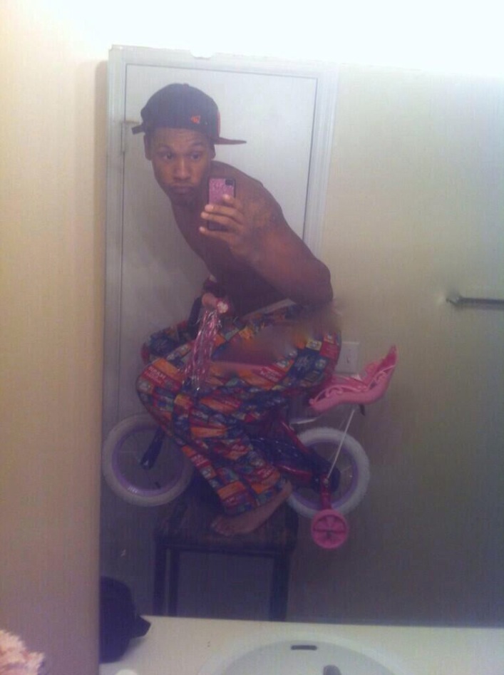 Dude Riding His Sissy Bike with Training Wheels in the Bathroom Selfie