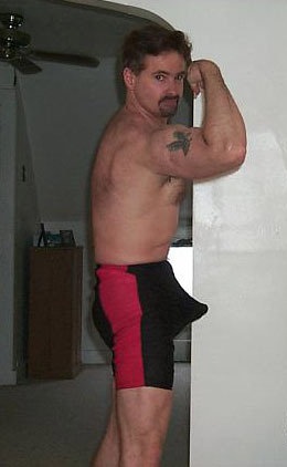 This guy really likes to show off his muscles. Ask him to make a pose and he'll show you what he's got. I wonder who took the picture?