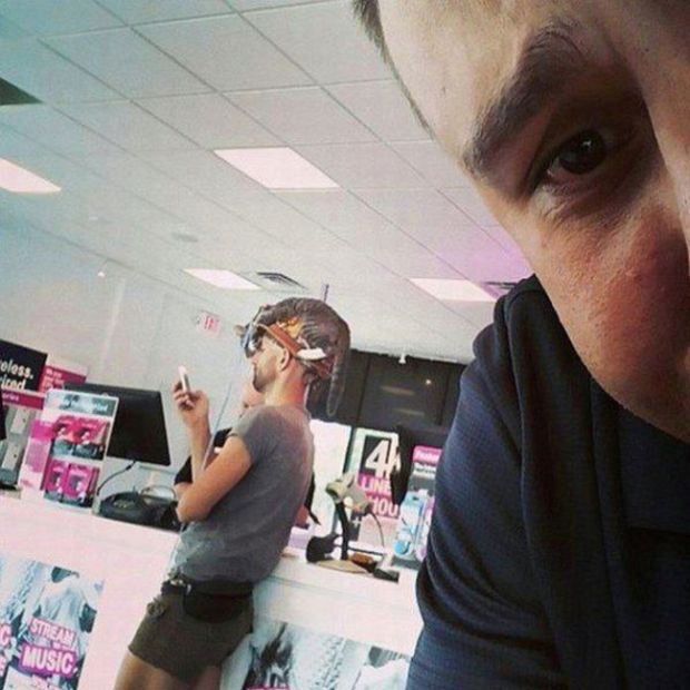 Ok now I've seen everything. This guy must have a really mellow cat with no claws. One wrong move and his head could wind up bloodied and scarred.