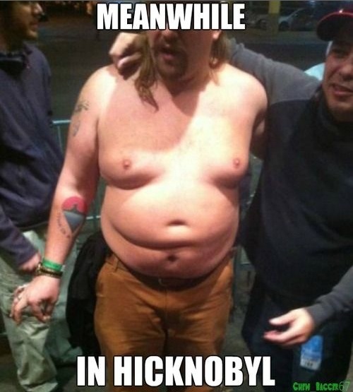 Dude with Two Belly Buttons & Man Boobs Meanwhile at Redneck Chernobyl