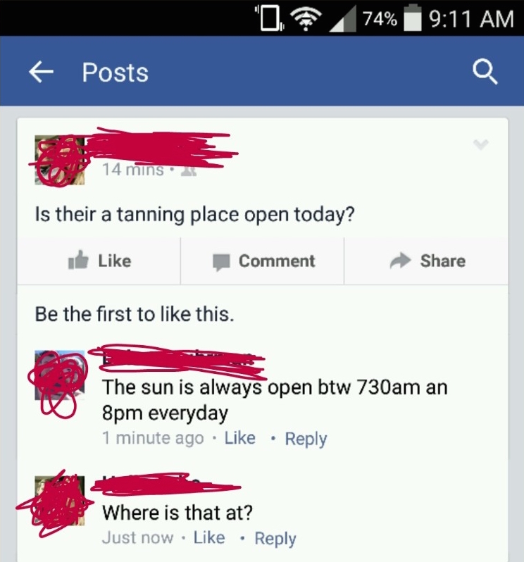 Dumb Facebook Post: Sun Tanning Salon