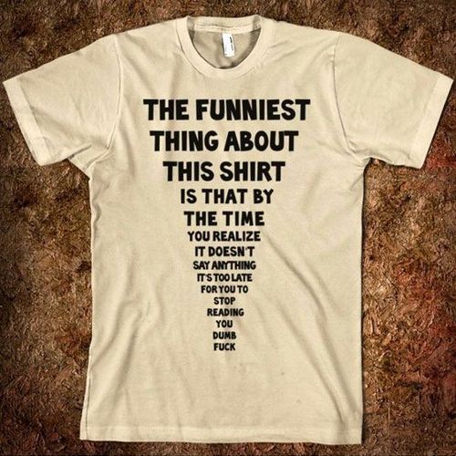 The funniest thing about this T-shirt is that by the time you realize it doesn't say anything it is too late for you to stop reading.
