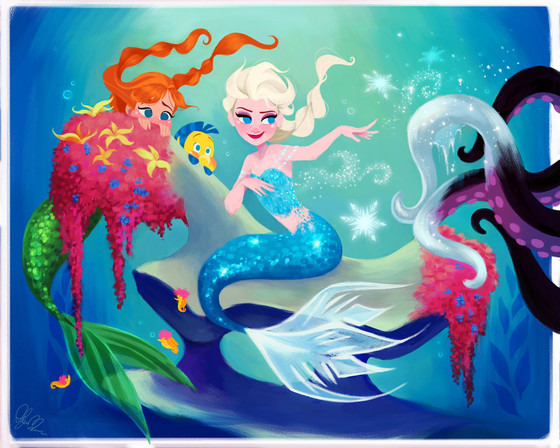 Elsa displays her amazing ice powers not only in land, but also in the deep sea to save her sister and flounder!