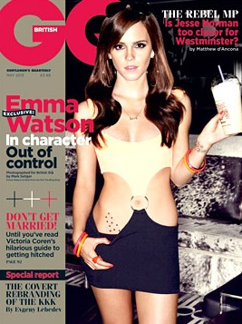 Emma Watson shows off a little skin on the May 2013 cover of British GQ.