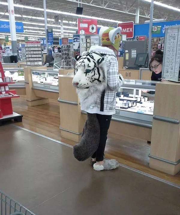 Endangered Species or Backpack? Rare White Tiger Spotted at Walmart.