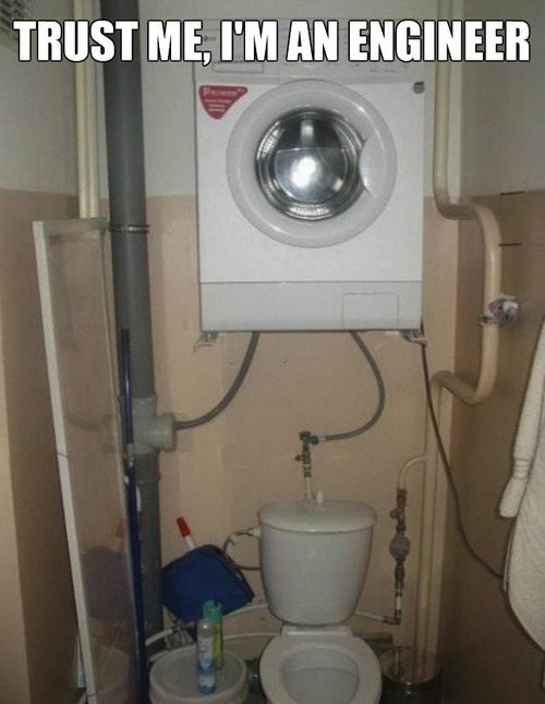 I don't have a degree in engineering, but I think it's a really bad idea to have a washing machine installed on top of a toilet. IT's not very ergonomic at all.