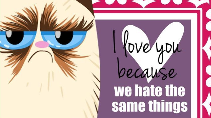 Grumpy Cat Valentine’s Day cards I Love You Because