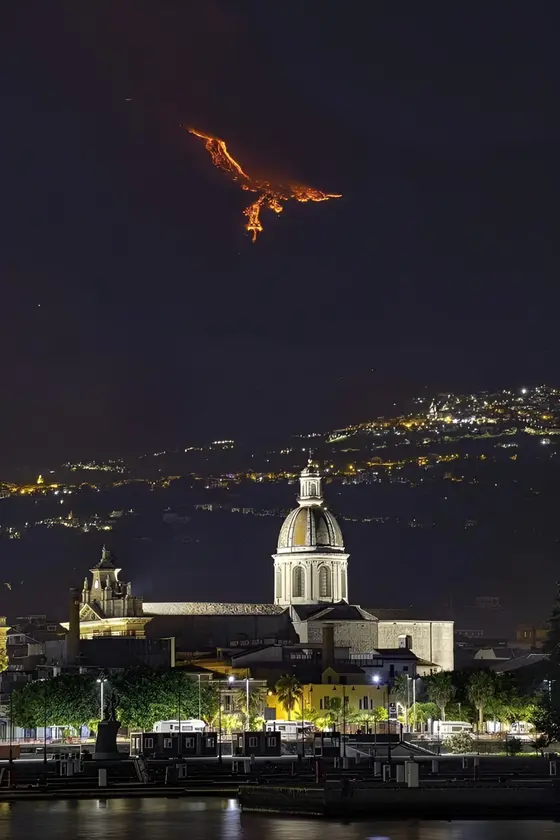 Eruption on Mount Etna (Sicily) gives the illusion of a Phoenix in the sky