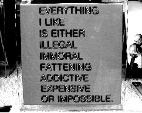 Everything I like is either illegal, immoral, fattening, addictive, expensive, or impossible. Why does life have to be this difficult?