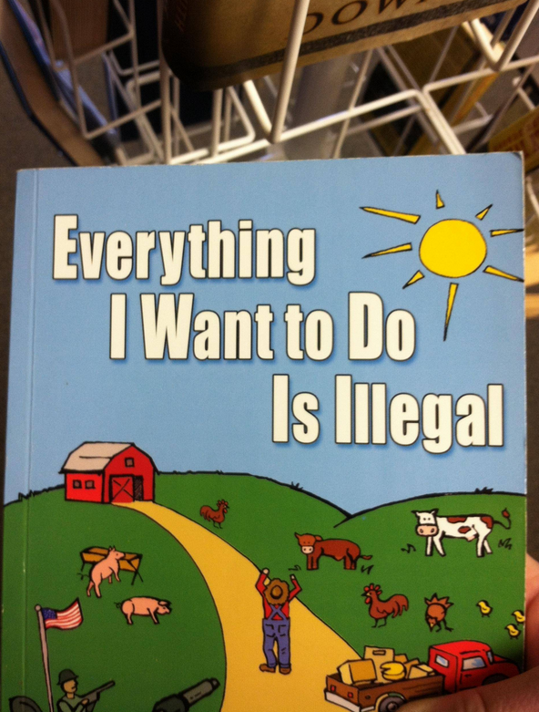 I found this in my sons libory the book is called "Everything I Want To Do Is Illegal" lol