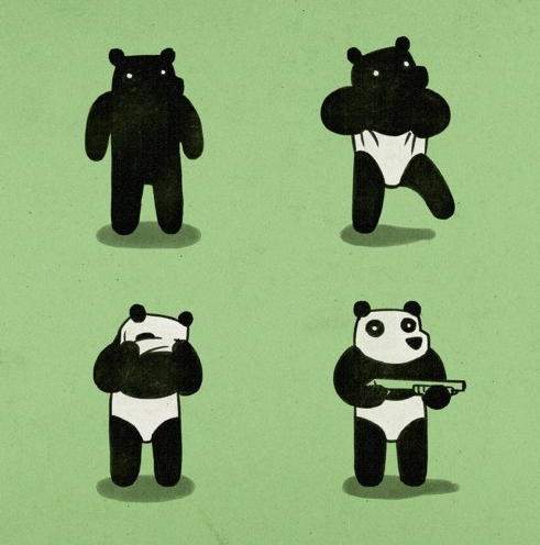 Ones opona time the black bear wanted to robe a bank but he didn't wont anyone to now that he was the one behind this crime so he put on the white mask and white underwear. SUCCESS people that that he was so cut and called him panda