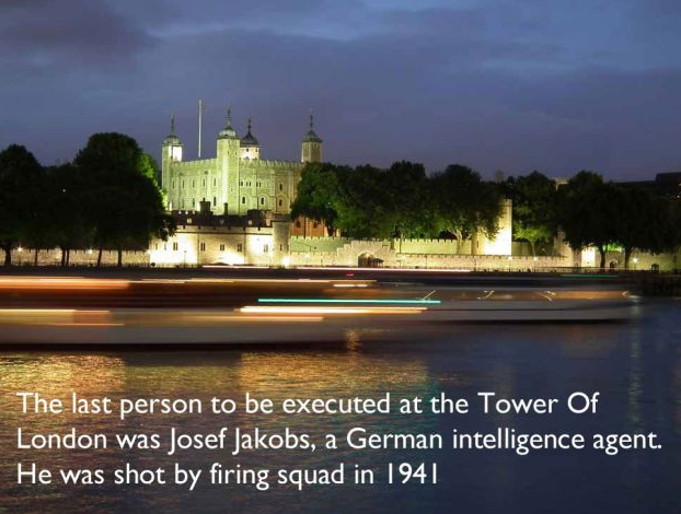 The last person to be executed at The was Josef Jakobs a German intelligence agent He was shot by the firing squad in 1941