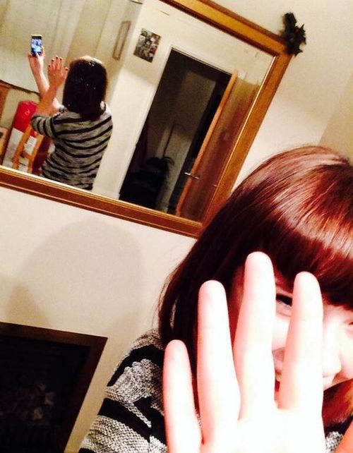 What an idiot. Trying to grab a candid selfie but we can all see what you're doing because of the mirror. Damn.