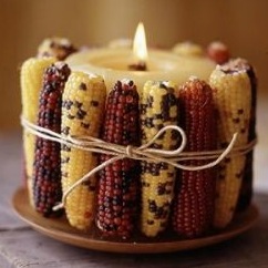 Take a large pillar candle, put it on a plate or dish larger than it is and set dried corn cobs all around the candle. Tie with twine and enjoy!