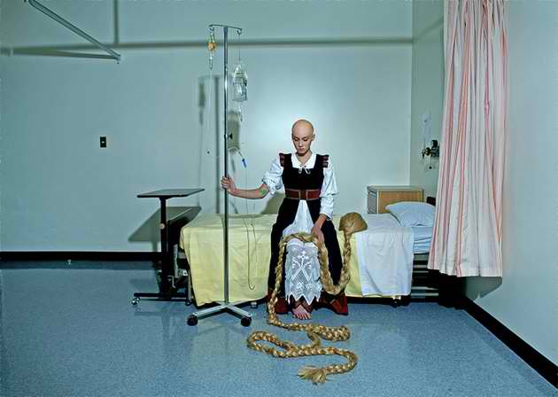 This is a sad interpretation of Rapunzel's tale. This character is best known for her extremely and out of this world long hair. In here though, she is supposed to be afflicted with cancer and has to shave off her hair.