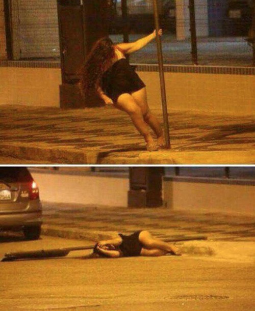 Poor girl didn't realize they didn't put the pole in their solid. Imagine pulling the pole out of the ground mid swing? That's going to leave a mark.