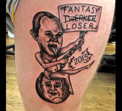 Don't ever EVER lose to a group of fantasy footballers in Nebraska. This is what you'll get for the rest of your life. Apparently, this is what you get if you finish last in the games, so the teams have to work really really hard (cool guys!). This year, they have a modified "Wrecking Ball" picture. How cool is that?