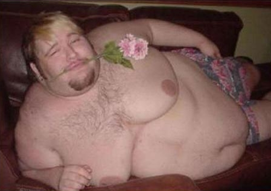 Fat DUDE with a Flower In His Mouth