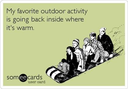 My favorite outdoor activity is going back inside where it's warm. It's winter season. It's very could outside.