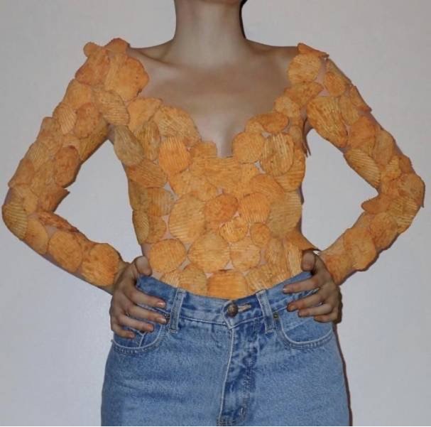 Feeling chipper in my new potato chip top. The best thing is it's edible.