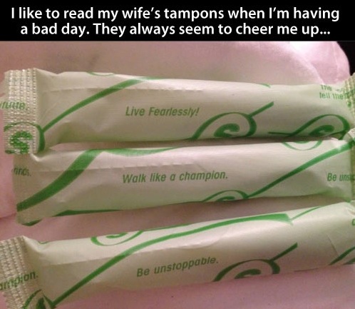 These tampons really know how to cheer you up if you are having a bad day. Live fearlessly! Walk like a champion! Be unstoppable. Thanks Kotex and Tampax.