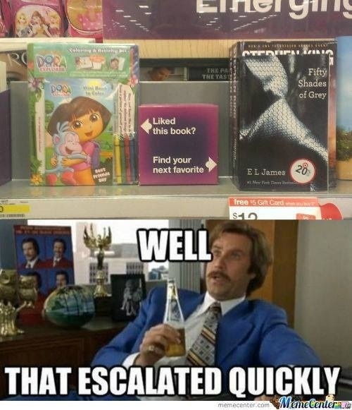 I don't think that this was an aptly designed placement scheme at the bookstore. I don't think kids who read Dora would be fond of the Fifty Shades book franchise.