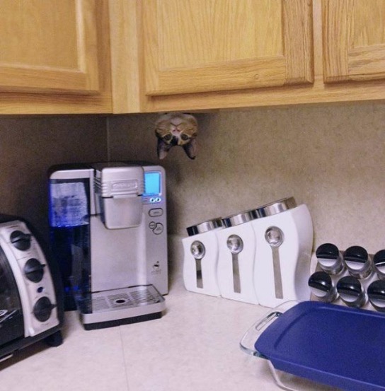 Find my cat in the picture. I'll give you a hint she is not on the countertop.